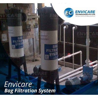 The raw water or waste water to be filtered will be pumped through the pressure vessel of Bag filter which will be consisting of filtration element ( known as Bag - PP ) of micron rating from 5u to 50u and in sizes of 5 lit and 10 lit water holding capacity. The clear filtered liquid flows continuously and can be recycled back to process or further treatment. Once the bag gets chocked with suspended solids that will generate the back-pressure and this is the right time to remove the suspended solids from bag and reuse ( depend on type of sludge ) it for specific period.