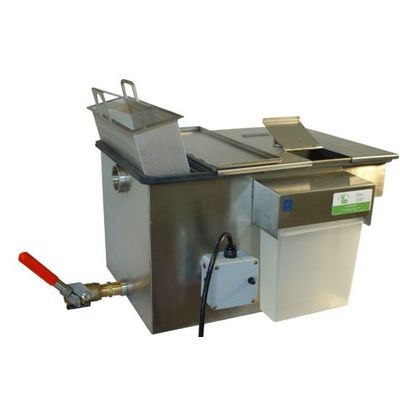 For where space is an issue we provide and arrange for installation of GRU – Grease Recovery Units. We can size for the appropriate use on site and provide different sizes to get the job done. Even if you have a trap on site, installing a GRU can help commoditize waste oil from the wash up process thus reducing the amount of free floating oils entering your trap, thus reducing the pump outs of you trap which can be costly. The reason is less oil goes in this reducing FOG build up, and also solids are removed in the GRU and the amount of solids entering the trap will be lower too.