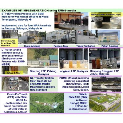 Envirosource in Malaysia pioneers the Enviroammanox® process using proprietary EMM media for efficient wastewater and leachate treatments. MBBR technology leverages the growth of biofilms on plastic carriers or media, which move within an aerated tank system. The EMM media in EMM-MBBR are designed to be buoyant, allowing them to move freely within the water streams and come in contact with pollutants and receive sufficient oxygen.