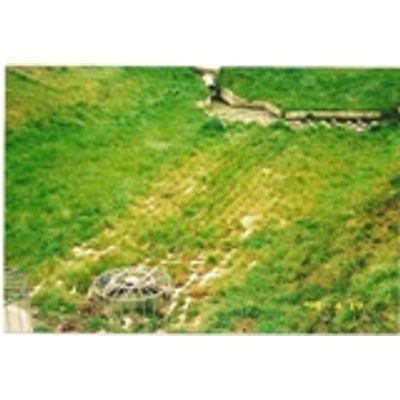 Grass Matt is designed to allow vegetation to grow through the mattress to camouflage the product to create a more natural appearance.The mattress consists of tubular woven fabric sections that are filled with grout to create a square grid pattern. The areas that remain free of grout consists of unwoven strands of thread that assist with retaining the soil in place behind the matt until the vegetation germinates. Once established, the mattress is locked in place, creating a bond with the growth that protrudes through the matt.
