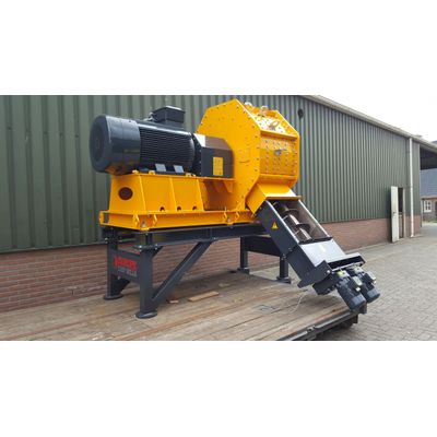 Hammermill opening: 69 cm x 123 cm. Hammermill Ø: OD 43 cm. Tooling: 24 Hammers. Power: 580 HP CAT C.15. Drive: Transfluid Fluid Coupling.