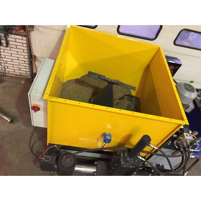 The Europe Grinders work with an innovative principle called friction grinding. Friction grinding is a way of grinding woodchips with the advantage of a higher capacity up to 40% less power consumption. The kinetic hammer effect of the swing hammers in combination with the special designed and hardened friction plates are ideal for grinding wet wood chips. The full surface of the housing can be used with this principle. This patented system ensures an homogeneous end product with a very low dust content, ideal for drying. The loading system with augers guarantee a continuous feeding.