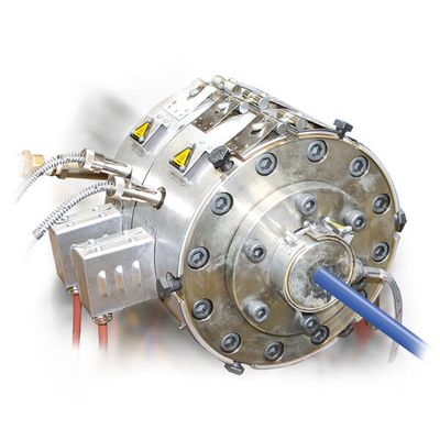 MONOLAYER Crossheads and Sheathing Heads for coating / sheathing of pipes, tubes, wires and cables. With rotary distributor, Outer diameters in range 4-100 mm, Wall thicknesses in range 0.1-3 mm
