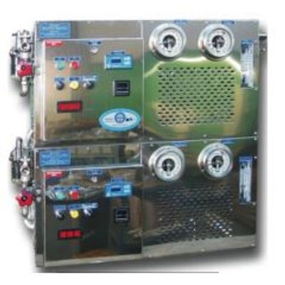 Liter per hour (at 250C) 1,000. Product water salinity (ppm) 300. Electricity power consumption (KW) 6.5 x 2. Power 380/50 3 phases. Weight (kg) 300. Dimensions (cm) L 135 D 90 H 55. Water intakes dedicate 1" x 2. Fresh water intake for flush- 1” x 2. Discharge 1” x 2. Production ½” x 2. Membranes Number 3 x 2. Type 4040. High pressure pump Type CAT 1051. Motor HP. Low pressure pump Stainless steel 316L.
