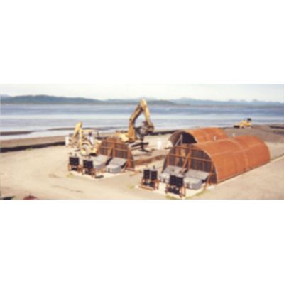 The permeation bed treatment technology is an excavation equipment compatible device. Wheel loaders can freely enter the treatment chamber for loading and unloading the soil. The technology is a static pile arrangement using flameless heat sources. The soil is treated through drawing hot air from a permeation bed, which consists of a large rock bed heating through hot air injection. The rock bed stores the heat, which lowers energy costs.