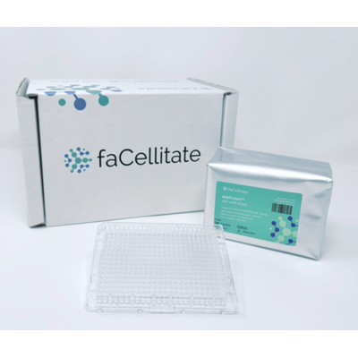 The BIOFLOAT™ 384-well plate is engineered for enhanced spheroid cell culture applications. It features a clear polystyrene surface with a round U-bottom, optimized for a recommended working volume of 50 µl. Its primary advantage lies in its anti-adhesive properties, ensuring rapid spheroid formation with high reproducibility. Within 24 hours, a single, perfectly round spheroid forms in each well, compatible with a variety of cell types including tumor lines, primary human and animal cells, and stem cells. The design eliminates the need for centrifugation, reducing cellular stress and saving valuable time. Long-term cultivation is also stable, supporting viable and functional spheroids over months. Constructed without animal-derived materials, these plates maintain high quality through GPC, GC-MS, and NMR spectroscopy assessments, and are sterilized per DIN EN ISO 11137 with electron beam irradiation to ensure a sterile, non-pyrogenic, non-cytotoxic environment.faCellitate BIOFLOAT™ - 96-well Plates for Spheroid Cell Culture