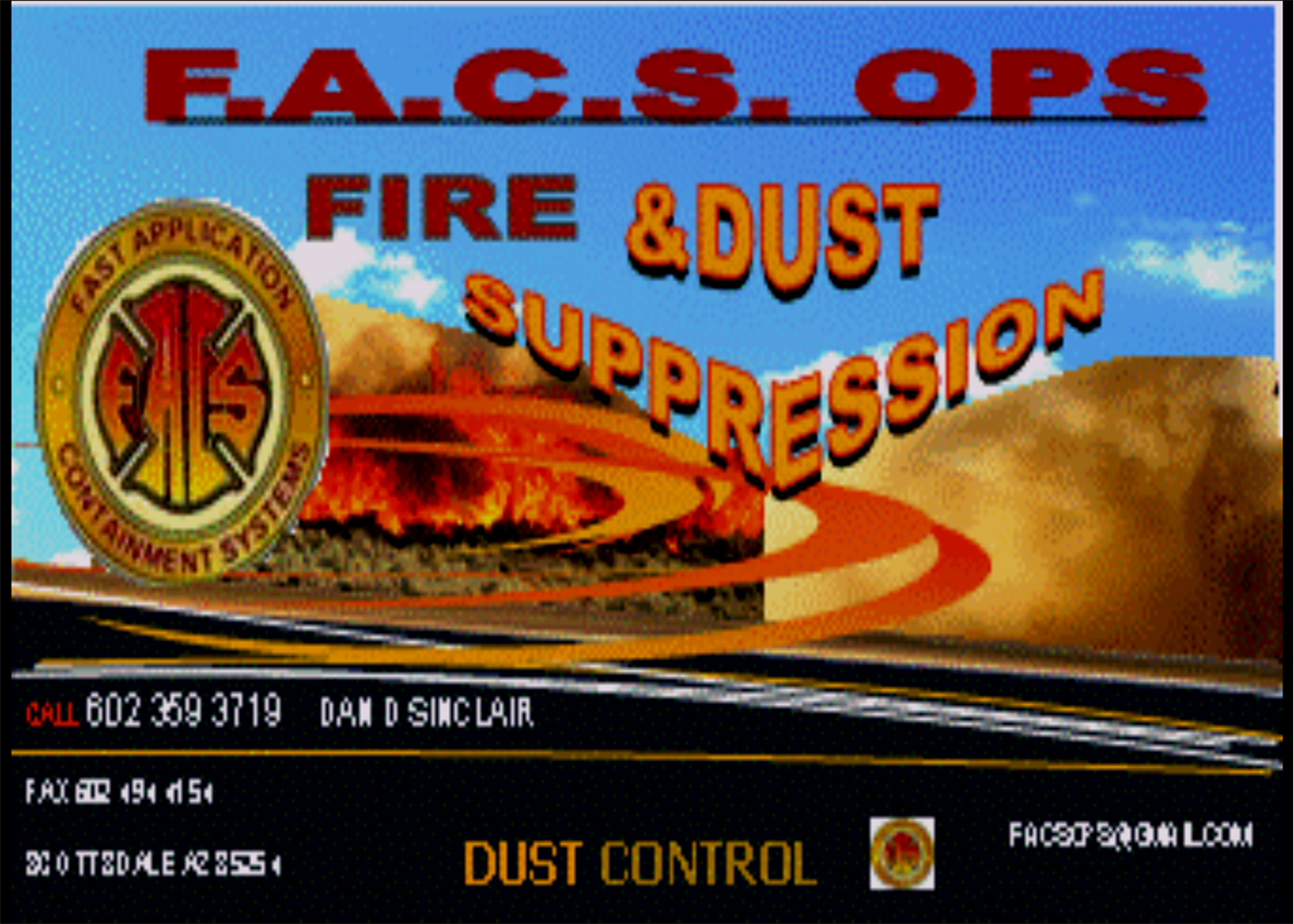 protective barrier that mitigates the effects of fire through two basic elements of wild fire containment. The first is pre-emptive encapsulation on surfaces with the F.A.C.. System, as the blaze will no longer have an accessible fuel source, it may be readily extinguished as the ignited surface area will be greatly reduced or the conflagration will seek surrounding combustible material, at which point it may be directed to a controlled burn pathway and targeted away from valuable property while substantially minimizing water consumption.The second is direct application of the product onto existing ignited materials, in this scenario, the System acts as a “blanket†barrier, literally smothering the flames by oxygen deprivation as it forms a containment layer. Additionally a lessening of smoke release, particulate matter and hazardous ember propagation is realized as the natural “tacky†properties of the system have been shown to both trap smoke, noxious gases and EFFECTIVE 3 M
