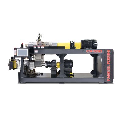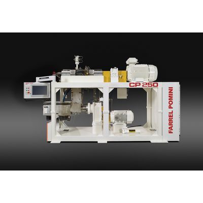 Compounds and extrudes highly filled, temperature sensitive and abrasive materials with low processing temperatures. The CP Series II™ Compact Processor with Continuous Mixing Technology is unique to the polymer conversion industry, offering high-performance compounding with the ability to convert highly filled, temperature-sensitive and abrasive materials at low processing temperatures. The extremely productive CP Series II™ is designed specifically for excellent polymer dispersion and distribution resulting in a reliably homogeneous, thermally consistent compound. The independently controlled compounder and extruder are designed to incorporate various types of feeding systems and pellet formation components for exceptional versatility and a range of applications. Mounted on a single frame, the FARREL POMINI CP Series II™ Compact Processor is fully wired, piped, pre-tested and ready for installation.
