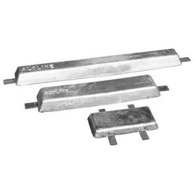 Aluminum anodes have long been used in the fight against corrosion. Applications for aluminum anodes include ship hulls, tank interiors, offshore structures, submerged pipelines, piers, pilings, etc. ALOLINE aluminum anodes are designed for optimum performance under a variety of environmental conditions and temperature ranges. Cast in different sizes and weights, ALOLINE anodes provide maximum performance in seawater and brackish environments.