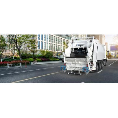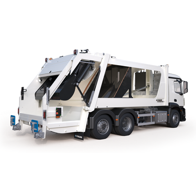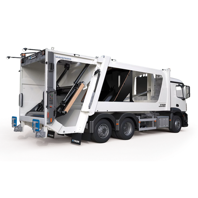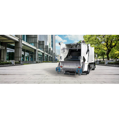 Push-button operation. Radio remote control for large container swivel arm. Hydraulic rear floor support. Centralised lubrication.