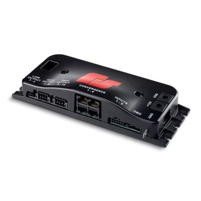 16-channel control module with OBDII integration capability. (16) programmable high output relays, each 2.5 A. (2) programmable low output relays, each 0.5 A. (8) programmable inputs available for chassis and body 12 Vdc signals. (4) Convergence Network ports. USB port to connect to FSDirect Convergence Software, which allows for easy customization. OBDII (On-Board Diagnostics) integration – with purchase of separate vehicle-specific OBD interface cable. Housing features a connector holder – an installation benefit to hold the connector while wires are connected. Programmable timer feature – senses ignition on-off and allows the selection of multiple timer settings configured in the software. Multi-voltage, 12/24 Vdc. Five-year warranty.
