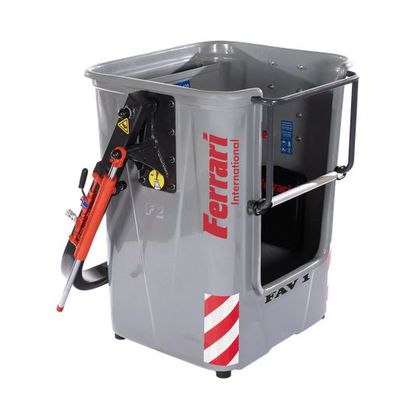 The FAV 1 personnel basket, made of fiberglass, is ideal for a single operator. It is equipped with a stabilizing cylinder for smoother movements, a gravity-closing entry gate, basic reflective stickers on the bottom and sides of the basket, and an integrated fiberglass tool holder and document case. FULLMATIC kit mandatory for compliance to EN 280.