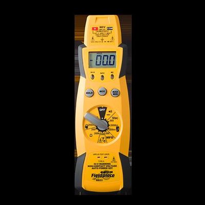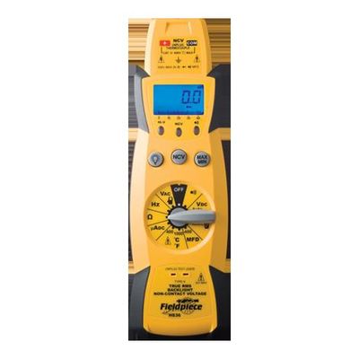 Works with all accessory heads, Non-contact voltage, MIicroamps DC for flame diodes, 400 AAC with included amp, Temperature up to 1000 degrees F, Lead storage. Expandable True RMS Stick Multimeter with Backlight – Designed for HVACR Field Service – HS36. Our top of the line Stick Meter, the HS36 includes the ranges you use everyday for HVACR field service plus includes a bright blue backlight and True RMS. Like the rest of the HS30 series, the HS36 comes equipped with a magnetic hanger, along with detachable silicone test leads and alligator clip probe tips for remote and easy one-handed testing, as well as the full set of built-in safety features. This auto-ranging stick meter also includes a bar graph on the LCD for an analog feel. Technicians who prefer our expandable stick meters tell us this is the best digital multimeter for HVACR field service.