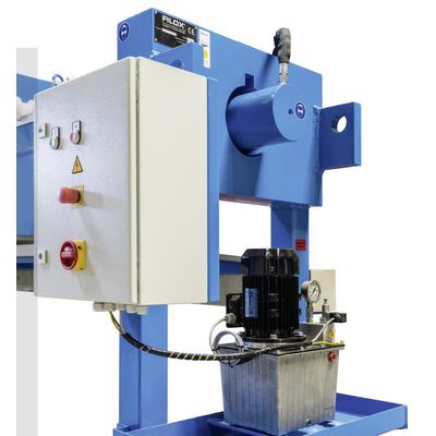 Our automatic filter press is equipped with a hydraulic plate transport and drip plate, which is operated by means of a PLC control. The filter press is closed and opened with a double-acting hydraulic cylinder.