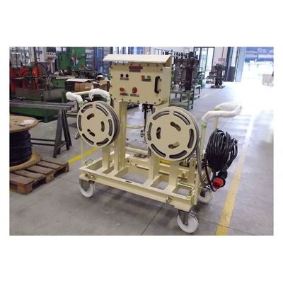 The purpose of the trolley is to refill the synthetic oil tank from an external oil reservoir.
