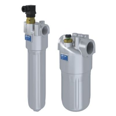Inline filters for operating pressure up to 100 bar, flow rate up to 400 l/min. Available with or without bypass, indicator port is a standard option to fit a visual or electrical differential indicator.