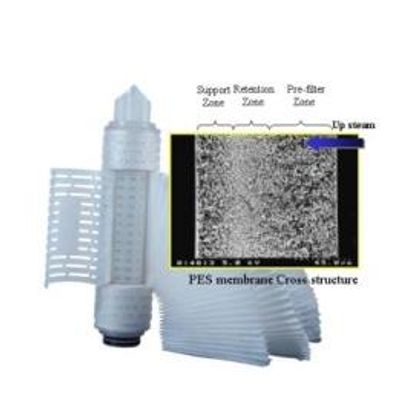 Poly-Philic pleated filter cartridge is a PES (polyethersulfone) membrane in a polypropylene casing. The filter media polyethersulfone is the mirrored asymmetric structure that ensure lower pressure drop at high flow rate, and extended service life.
