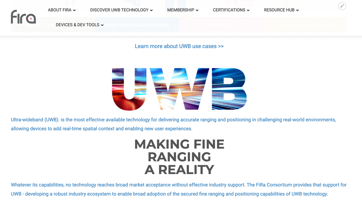 The FiRa name, which stands for `fine ranging` and is pronounced `fee-rah`, highlights ultra-wideband (UWB) technology`s unique ability to deliver unprecedented accuracy and security when measuring the distance to a target or determining position. The FiRa Consortium is dedicated to transforming the way we interact with our environment by enabling precise location awareness for people and devices. As an industry Consortium, we believe UWB technology can transform the way people experience connectivity, and we’re committed to the widespread adoption of UWB-driven applications. The marketplace is at an inflection point where a broad set of established companies are designing and building products and services utilizing UWB technology. However, as UWB technology makes the transition to mass scale usage, our members know that its success depends on an interoperable, holistic, and inter-connected ecosystem.