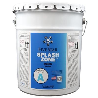 Underwater Epoxy Mastic Coating. Five Star Splash ZoneTM is a 100% solids, two-component epoxy putty compound used for the top-sealing of pile jacket repairs at, above or below the waterline in fresh or salt water splash zones. It forms an excellent bond to concrete, steel, wood, fiberglass and aluminum, and cures/hardens to an abrasion and impact resistant material.