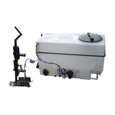 The Fastliner ride-on-system offers the customer a number of key advantages. The Fastliner has been developed to cut down marking time which reduces cost. Primarily targeted at the customer with a number of sports fields to mark out, the Fastliner has become a real winner around the world. A 150 litre tank is mounted on the back of a utility vehicle or ATV. The paint tank is calibrated in litres and US gallons to help provide accurate mixing and cost control. Mounted on the side of the vehicle is a retracting arm on which the spray assembly is attached. This arm eliminates the need to reverse the vehicle when marking up to and around goal posts. The arm can be extended and retracted to keep the vehicle on the same driveline all the way along the line. The spray head, very importantly is downward facing at all times.
