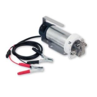 Electric gear pump for an intermittent use, for the transfer of low viscosity oil, antifreeze (A), diesel (D), water (W). Protection category IP55. Pump body in brass, gears in bronze and pump shaft in stainless steel. Electric cable and crocodile clamps not included.