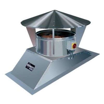 A galvanised sheet steel based fan designed for sloping roofs. An axial roof fan for sloping roofs.