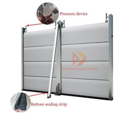 Reusable Water flood Barrier for garage Dams Anti Flood Barrier For Home Door Aluminum Flood Barrier Silver Gray Height 126in-181in Customizable Width. Flood barriers,also called flood shields and flood panels, which protect different kinds of openings from damage caused by flood water inundation. Flood barriers are installed easily and quickly.Made of triple-thick aluminum, heights up to 181in.