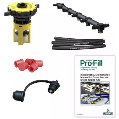 Single-point battery watering kits for flooded lead-acid battteries. This kit is primarily used in solar or renewable energy applications. Kit: Battery Watering System for 72-volt, Flex manifolds, two couplers.