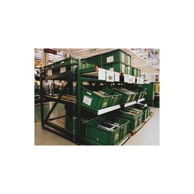 This Heavy Duty Carton Flow Racking System is tough enough to endure high impact, maximum weight applications, making it ideal for environments such as the automotive industry and other demanding environments. A Carton Flow Racking System allows picking operations to be performed at the front of the system while replenishment takes place at the back of the system. As cartons are removed from the picking side, new product rolls forward to replace those removed. Carton flow can increase pick rates up to 30% versus static storage, and provides a more ergonomically safe picking process.