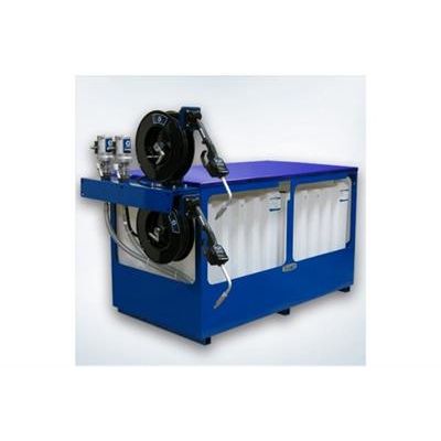 Fluidall’s Work Bench Tank Efficiently Stores and Dispenses Fluids and Lubricants in Confined Shop Applications. Fluidall’s Work Bench Tank conveniently encloses multiple single-wall stackable Tote-A-Lube storage tanks which are housed in a secondary containment vessel. Our Work Bench Tank is complete with a powder coated work surface area, which will remain clean and free of oil residue, because the bench tanks’ fill ports are located below the work bench surface. Work Bench Tanks are equipped with a universal side mounting shelf that utilizes Graco’s reliable fluid handling equipment, giving you the ultimate in fluid and oil storage solutions for confined spaces.
