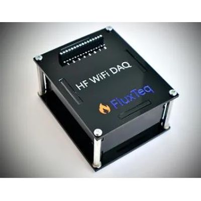The HF WifiDAQ is an 8 channel heat flux sensor and thermocouple DAQ that can take data directly into a Google Sheet spreadsheet. This unit has ultra-high resolution. It is 24 bit and can resolve down to the microvolt scale for extremely low heat fluxes. Each device purchase comes with a particular Google Sheet ID, Software to program the logger comes with the device and is available on Windows. Device must be plugged into an outlet to log data.