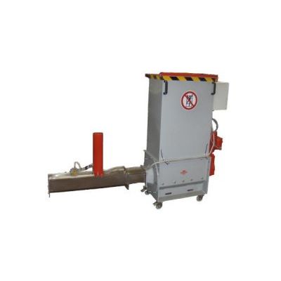 LION 200 - 1000 compactor / densifier with 1000 mm (39.4`) wide Pre-Breaker. Produces a continuous log of compacted foam plastic. Log dimensions: 210 x 210 mm (8-1/4` x 8-1/4`). Small footprint: 44` x 180` (with optional log holder). Throughput per hour: 100 - 130 lbs or 7 - 8.5 cubic yards of loose packaging.