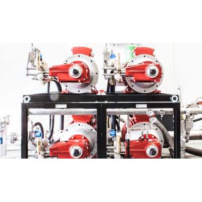 FOGTEC pump systems work at a pressure between 60 and 140 bar. If lower pressures would be used, the droplets generated would either be larger or they would have insufficient acceleration to reach the fire (law of energy conservation).