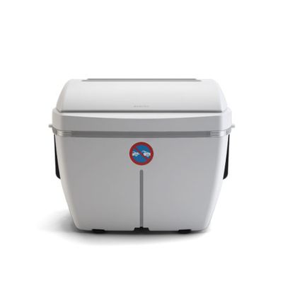The Cabinet was designed to conceal containers of 120 and 240 litres. Users simply open the lid and deposit : their waste, which drops by gravity into the 120 or 240 litre containers inside.