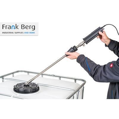 IBC container cleaner with 360° spray range. The IBC tank cleaner is hung in the tank through an opening in the IBC lid. This industrial IBC tank cleaner is directly connected to your high-pressure cleaner. The electrically driven motor ensures that the IBC is thoroughly cleaned on all sides.