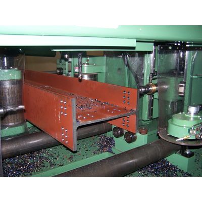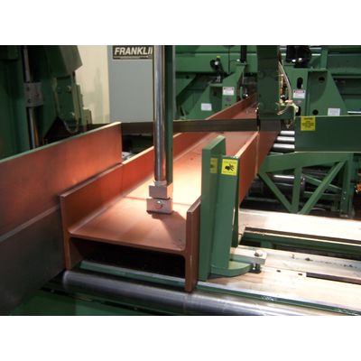 The Franklin HD145 (3) spindle CNC drill, with 44-inch width capacity. The HD-145 handles beams up to 750 lbs per foot. The hi-performance spindle design provides drilling capabilities up to 2,000 RPM. This rigid design provides extremely aggressive feed rates up to 300 surface feet per minute. The Franklin HD145 can be provided with several material handling packages from 300 lbs per foot, to 750 lbs per foot.