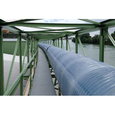 Our standard conveyor belts are equipped with a flat rubber belt and recessed stations. This allows the material to be conveyed up to a gradient of approx. 21°. Our standard programme includes four belt widths, chassis structures for spans of up to 42 m, clamping and drive stations and all conveyor inspections. With these cost-effective standard designs and individual special constructions, we meet all customer requirements.