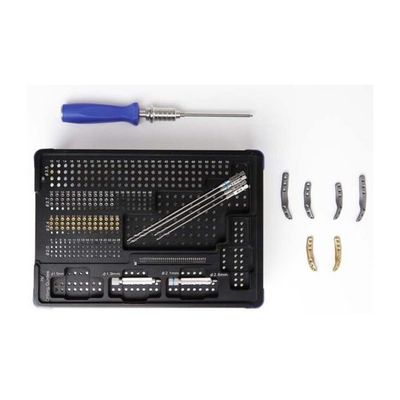 Fusion LEAP Instruments: Drilling Guides: 1 x 1.9 mm Drilling Guide, 1 x 2.1 mm Drilling Guide. Drill Bits: 2 x 1.9 mm Drill Bit, 2 x 2.1 mm Drill Bit. T8 Screwdriver. Screw Rack/Container.