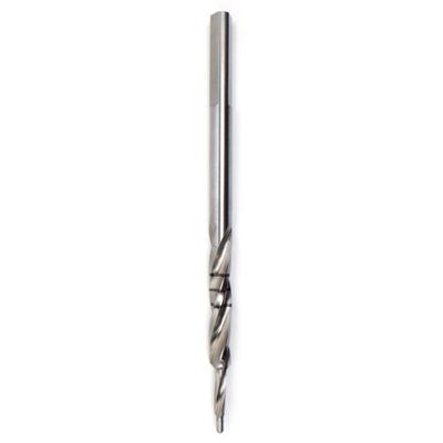 The HIRS drill-bit made from Stainless Steel is designed to simultaneously drill a hole of varying diameter, simplifying the procedure and creating a void around the central section that is packed with DBM putty.