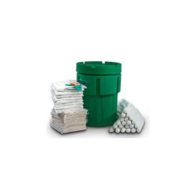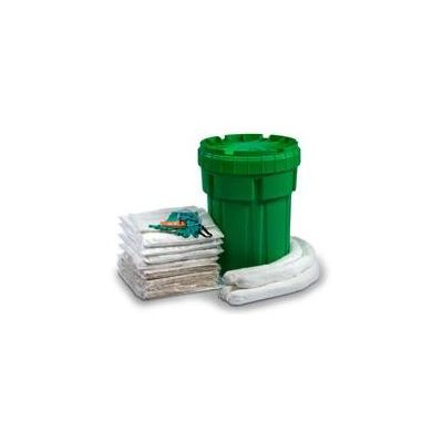 This large capacity spill kit absorbs 90% more than the 30-gallon kit and the complete kit comes stored in a D.O.T. approved 100% recycled container.