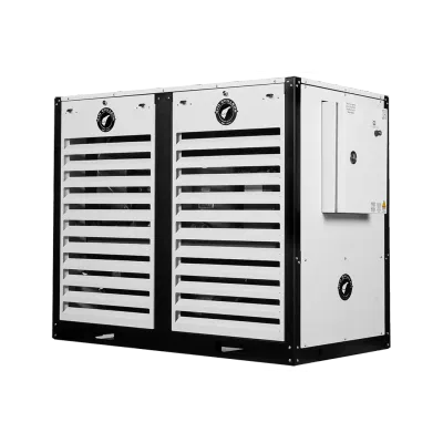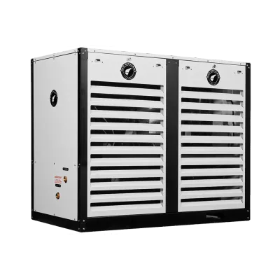 Ideal for high volume operations, each Vertical Air Chiller contains multiple semi-hermetic reciprocating compressors with capacity unloading. The GD-30H-2C is built with two 15 HP compressors partnered with oversized air-cooled condensers to maximize efficiency and cooling capacity. Vertical Air Chillers are complete package and turnkey units, with oversized stainless steel reservoirs, process and chiller pumps, compressors, and condensers. G&D Chillers will help engineer the optimum solution right down to the placement and commissioning of your unit at your facility.