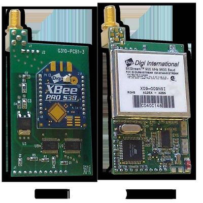 The G310 Radio Adaptor board was developed as a form and function compatible drop-in 9XStream radio replacement. The 9XStream was formerly made by Digi International (Maxstream). For G3 Technologies wireless I/O products, the G310-01 uses “XSC” firmware, making it configuration and over-the-air compatible with the X09-009 XStream radio (shown in pic) previously used. The G310-01 uses the 900mHz XBee-Pro RF module, and can be used with the XSC firmware compatible with the 9XStream, or with Digi-Mesh firmware for high-performance Mesh-network applications. It also doubles the affective RF range with 250mW of Tx power.