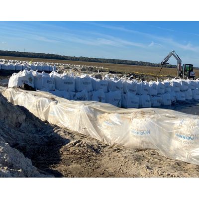 The Beluga Bag barrier is a unique flood control system that is ideal for protection of important property and infrastructure. Oversized Beluga bags can be used for flood control, levee height extension, water and stream diversion, blast protection, erosion control, storm surge protection, berm construction, and much more. The Beluga bag barrier is a concertina style big bag system, consisting of an integrated heavy duty bag, divided into 5 distinct chambers, ready to receive sand or other aggregate or fill material. Each individual compartment is incredibly strong and can hold over 5,000 lbs of fill.