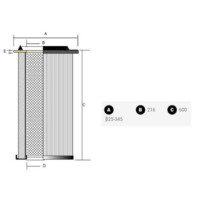 Standard: height 600 mm, filtering surface from 7,5 to 12 sqm, metal parts in galvanized steel, upper ring in plastic.