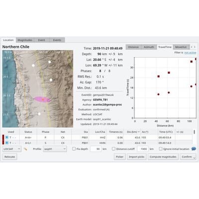 SeisComPro provides extensions to the SeisComP community package distributed by gempa GmbH and GFZ Potsdam to fulfill the requirements of earthquake and industrial microseismicity monitoring. It ships with modules tailored to enhance monitoring of local, regional and teleseismic natural earthquakes, explosions and induced seismic events: scanloc: for cluster-search based monitoring of earthquake in high-seismicity regions. Unlike scautoloc scanloc considers picks from P and S phases. ccloc for detecting and discriminating events applying template-based cross-correlation of waveforms sceval for discriminating real seismic events from erroneous or fake events which may occur during very-low threshold monitoring. GAPS / WebApps for accessing SeisComP system through a web browser from any system anywhere on Earth. GAPS allows to process waveforms and to visualize events, monitoring networks and data replacing the standard SeisComP GUI applications.