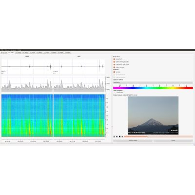 VORTEX is our package for Volcano observation combining some of the most useful techniques of volcano monitoring like RSAM and SSAM. RSAM stands for Real-time Seismic-Amplitude Measurement. It represents the overall signal size over periods of 10 minutes. In situations when the number of earthquakes is so high that individual earthquakes can’t be seen, or the level of volcanic tremor is such that seismograms no longer show a change in signal level, then RSAM is an excellent way of showing changes with time. SSAM stands for Seismic Spectral-Amplitude Measurement. It shows the relative signal size in different frequency bands. Using SSAM it is possible to get an idea of whether a signal is produced by earthquakes, by wind or traffic noise, or by volcanic tremor. Earthquakes, wind and traffic noise all tend to have energy at a wide range of frequencies (a wide-band signal), while volcanic tremor tends to have energy in a more limited range of frequencies (a narrow-band signal). In addition to these two techniques VORTEX integrates also other sensor data like video data to provide a more complete picture of the ongoing situation.