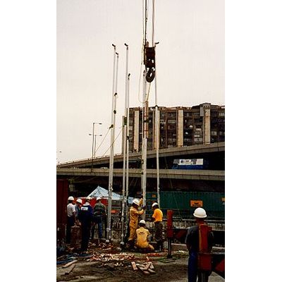 Holes are drilled, alignment checked and freezing pipes installed.