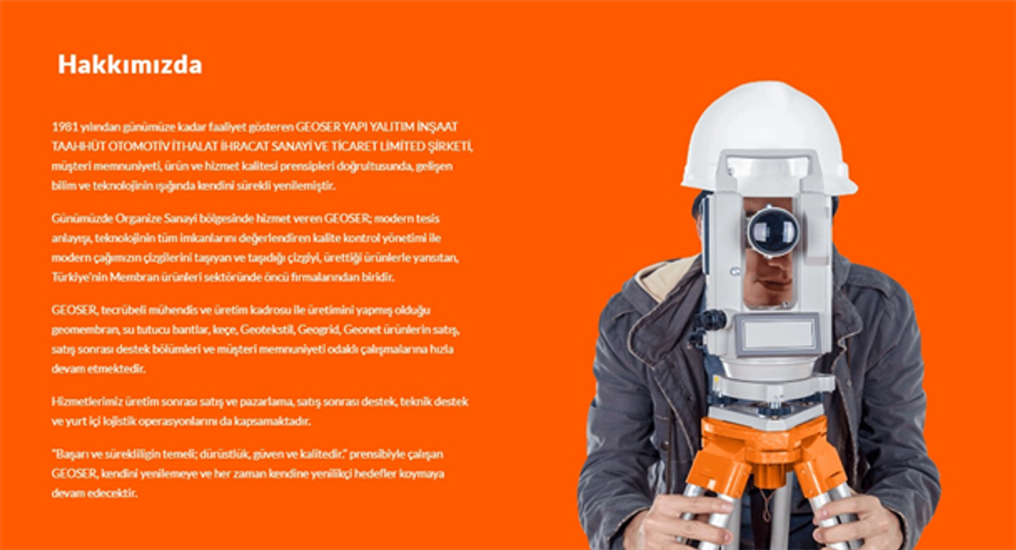 Geoser Yapi Yalitim Construction Automotive Import Export Industry and Trade Limited Company has been renewed continuously in the light of developing science and technology in line with customer satisfaction, product and service quality principles. Today, GEOSER serves in the Organize Industry area; understanding of modern facilities, quality control management to evaluate all possibilities of modern technology with our time line and move the line that reflects the products it manufactures, Turkey Membrane products are one of the leading companies in the industry. GEOSER is rapidly continuing to focus on sales of geomembrane, water retention tapes, felt, Geotextile, Geogrid, Geonet products, after sales support departments and customer satisfaction which have been produced with experienced engineers and production staff.