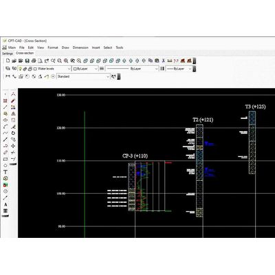 Geological cross section and geotechnical cross section can be made in the CPT-CAD program. It contains a set of tools enabling automatic generation of geological and geotechnical cross sections and maps based on information contained in interpreted CPTU soundings and information contained in the geological and geotechnical database GEO DB.
