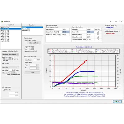 VANE-pro is designed for FVT data interpretation and presentation of data generated by electric VANE test apparatus. Compatible with Geotech and Geomil files.